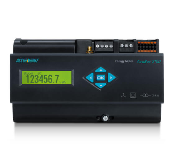 AcuRev 2100: Multi-circuit TOU meter for measuring electrical consumption of multiple tenants via branch circuit setup.