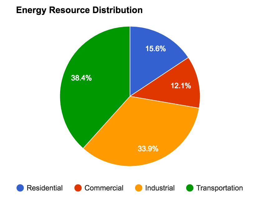 With 21.9 of 27.7 quadrillion Btu wasted per annum the transportation sector produces a mere energy efficiency of 21%. The lowest ratio of any sector. This is most notable due to petroleum accounting for over 90% of its energy resource. A thermal combustion engine used in road vehicles have a fuel efficiency of between 17% - 21% where an astounding 71 percent of CO2 contribution come from this sector. Aircrafts tend to use a more fuel efficient kerosene-based petroleum derivative, while ships are powered by diesel and trains have a diesel-electric combination.