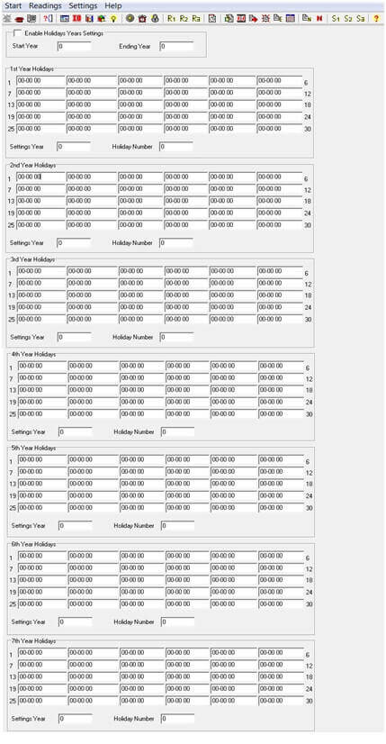 Note: Entering the dates in the wrong order will cause the TOU function to be disabledHolidays: