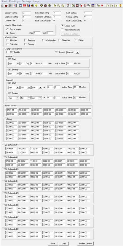 Make sure to click "Update Device" after making any changes in order to save the settings. If no errors are found then the TOU energy accumulation will begin.