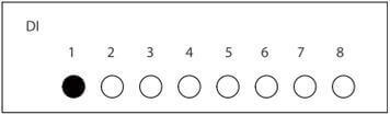 - A blank circle indicates whether the DI channel status is off or it acts as Pulse Input