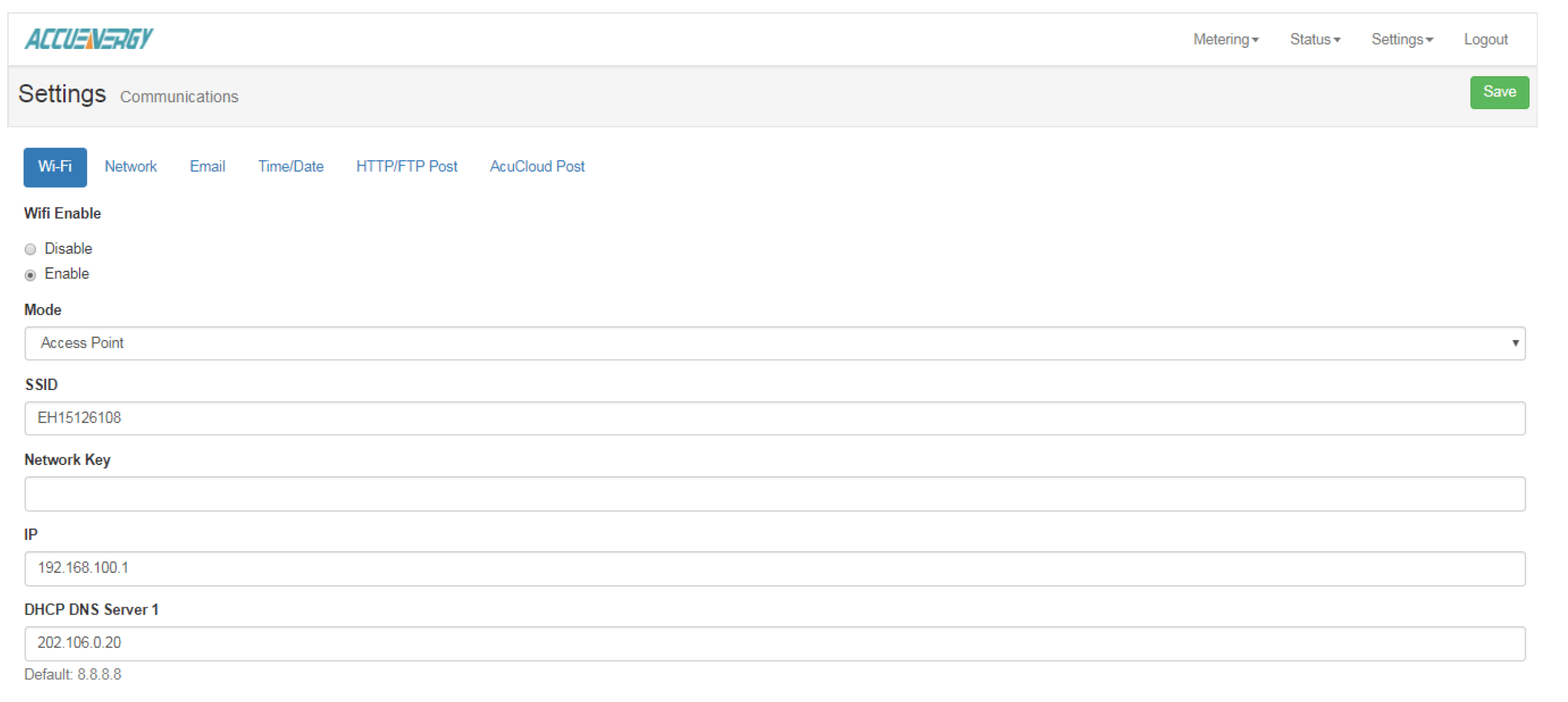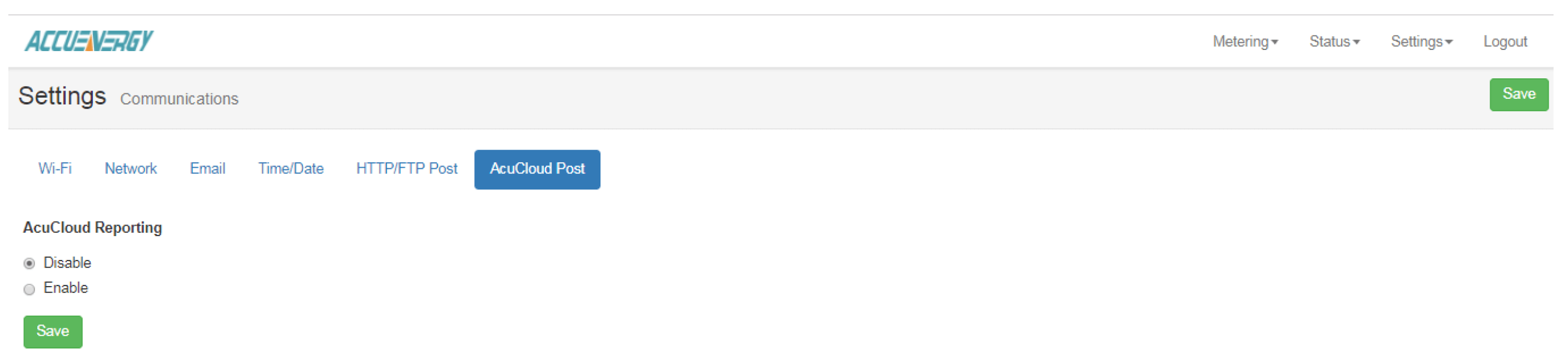 Access the web interface of the AcuRev 2020 in order to configure the meter to enable it to send its data to the AcuCloud software.
