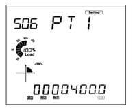 - Press "P" to get to "S06 PT1" screen. If no Potential Transformers (PTs) were used, leave this as default "400". If PTs were used, enter in the primary value of the PT here.