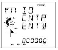 - On the pulse counter enable "IO CNTR ENBL" screen: 000001 means DI6 to DI2 are status monitors while DI1 is a pulse counter.