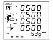 Press "P" to display/read real, reactive and apparent power, as well as the power factor and frequency.
