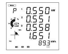 Press ‘P’ to display/read real, reactive and apparent power, as well as the power factor and frequency.