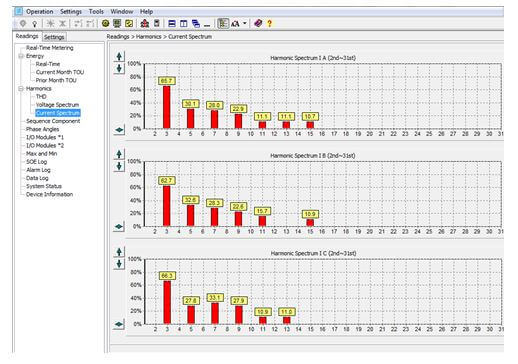 - Click on "Current Spectrum" to view the 2nd to the 63rd current harmonic spectrum