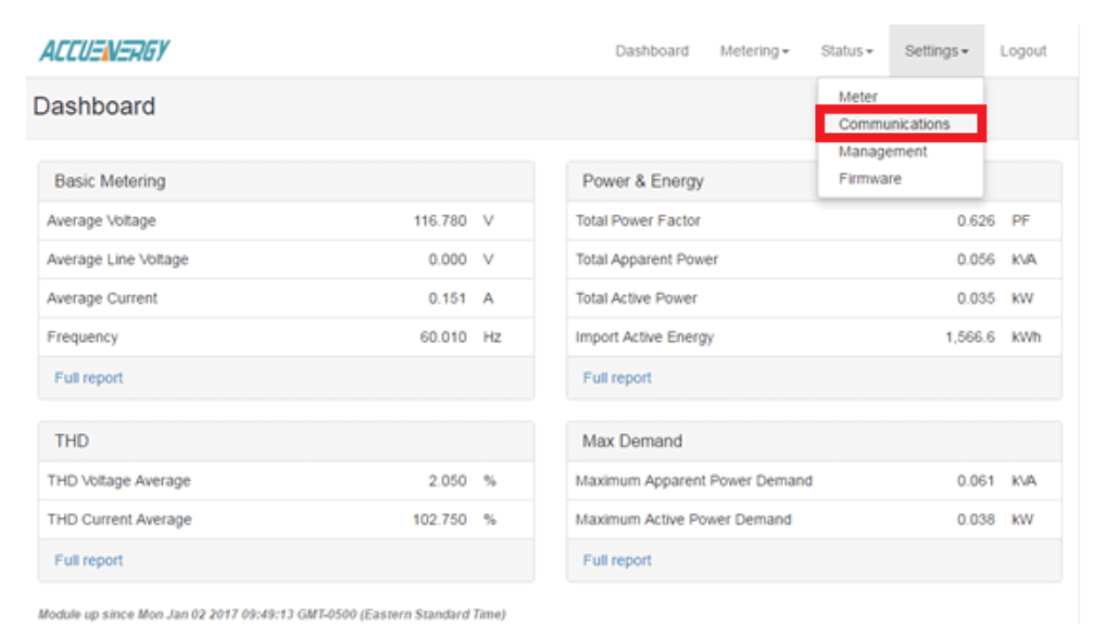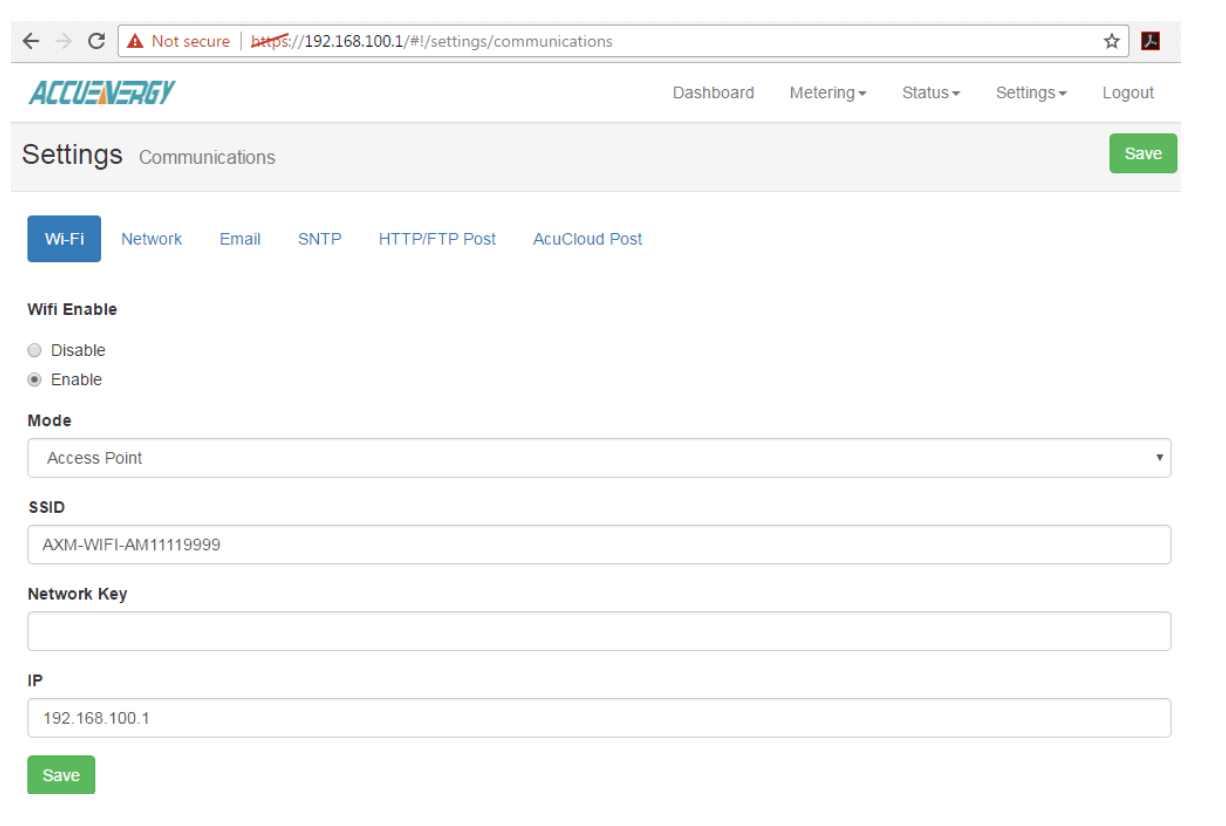The following guide will provide an overview on connecting to the AXM-WIFI module that is attached to the back of the Acuvim II series meter that has a firmware version of at least 3.63.