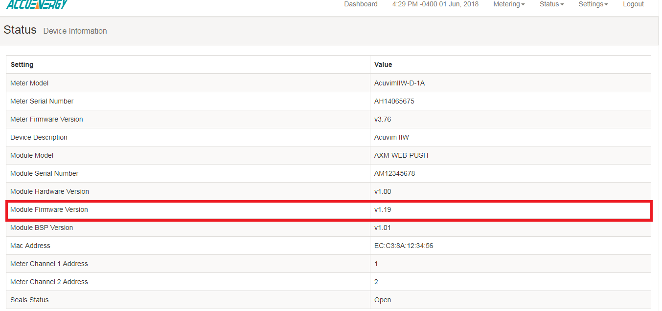 Check that the "Module Firmware Version" has been changed to the firmware shown in the Latest Firmware (Figure 2).