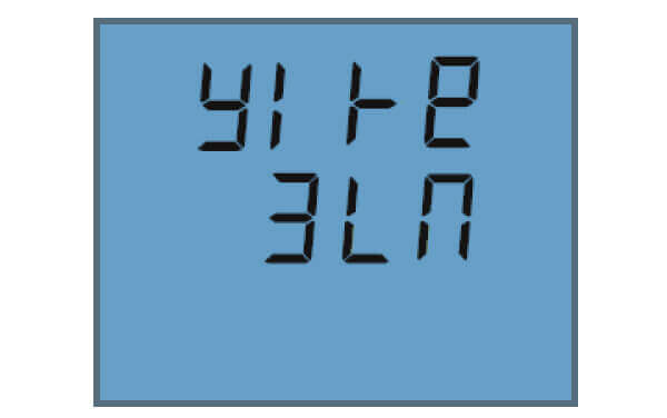 Press ‘V/A’ until you get to the ‘Y1 Ⱶe’ screen. Select the required voltage wire mode. This will be based on your voltage connection. E.g. if it’s a three phase 4 wire connection, select ‘3LN’.