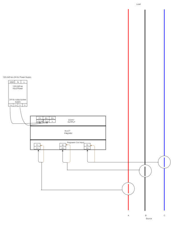 The following procedure outlines the steps to install the Rogowski coils to a 333mV output integrator and to measure current in a pre-defined range.