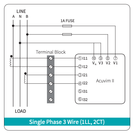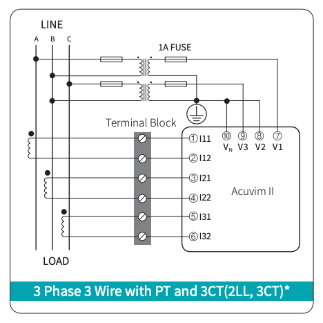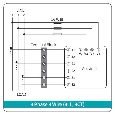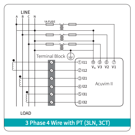 There are different kinds of wiring configurations that your Acuvim II meter must be configured to depending on the type of system it is. Some key factors include whether the system uses a delta or wye or whether it is single phase or three phase system. In order for the meter to correctly display and measure the values the right wiring configuration must be chosen.