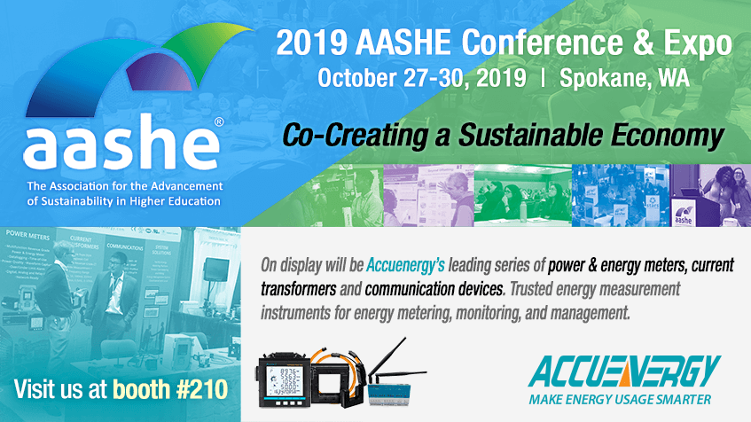 Accuenergy will be on hand at AASHE 2019 between October 27 - 30. We look forward to speaking with all conference attendees at booth #210 to discuss how to build sustainable infrastructure while supporting your business model. Our team can provide insight into our line of energy measurement products and explain how they are used to help accomplish your project goals.