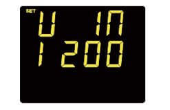 Press "V/A" to go to the next screen. This will be the "U In" screen. Enter the rated voltage of the Voltage Hall Effect Sensor.- Press "F" to change this setting. A digit will begin to flash and you will enter the edit mode.