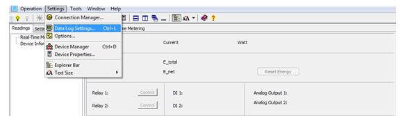 You can access this data log setting by clicking on the ‘Settings’ option located on the menu toolbar, and then clicking on ‘Data Log Settings’.