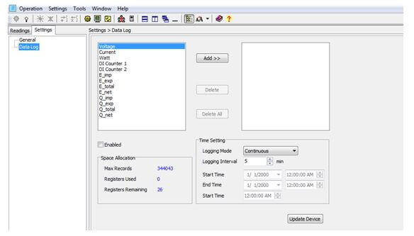 Note: When you click on ‘Update Device’, the meter’s data log memory will be erased.