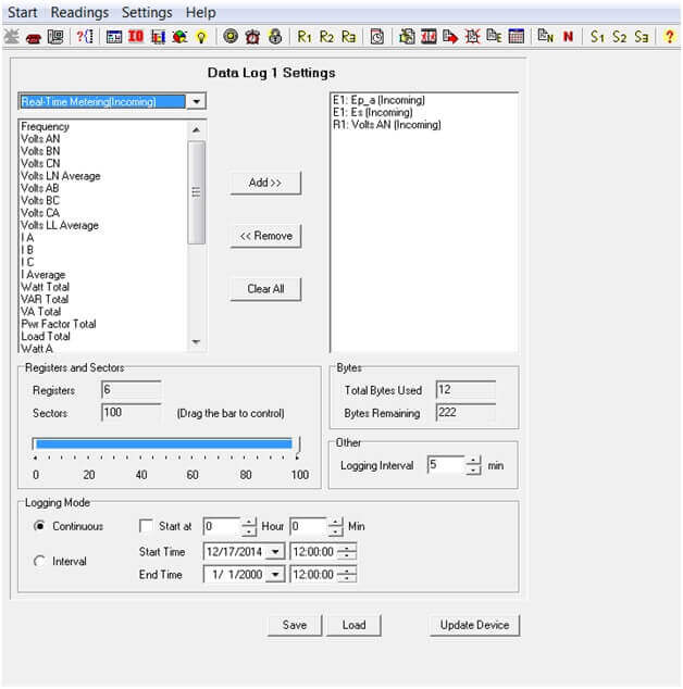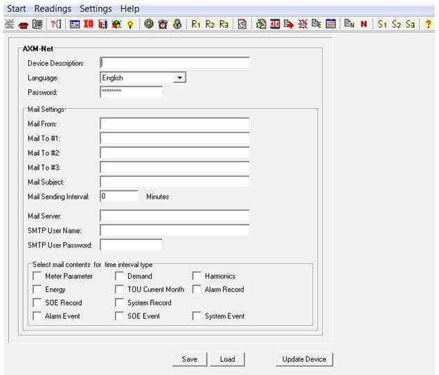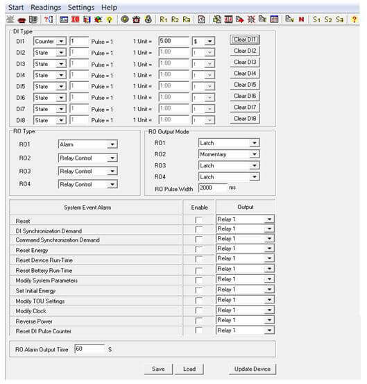 Make sure to click "Update Device" after making any changes, so that the changes can be saved on the meter.