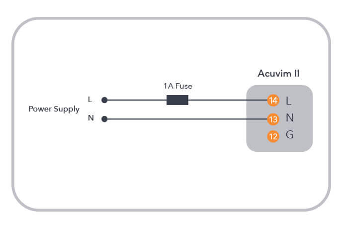 To power on the meter connect the power supply terminal as shown in Figure 7