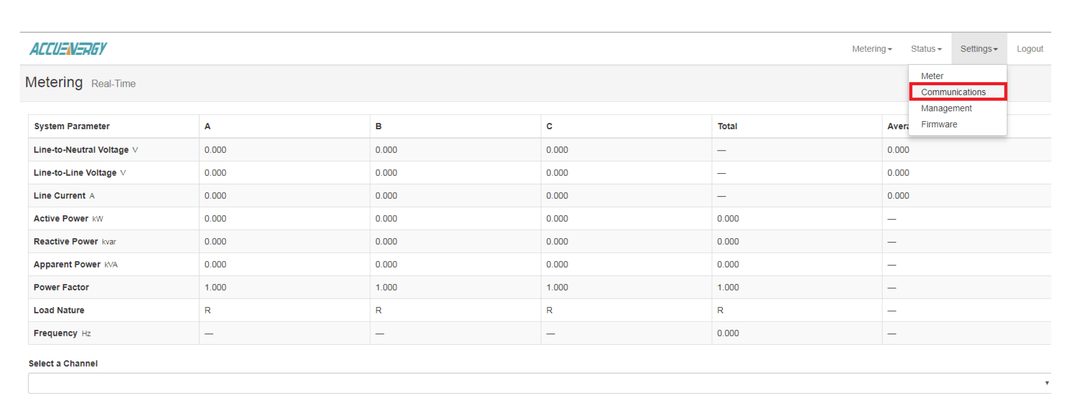 After making any changes to the settings of the AcuRev 2020 in the web interface, the meter will need to be rebooted from the 'Management' page.