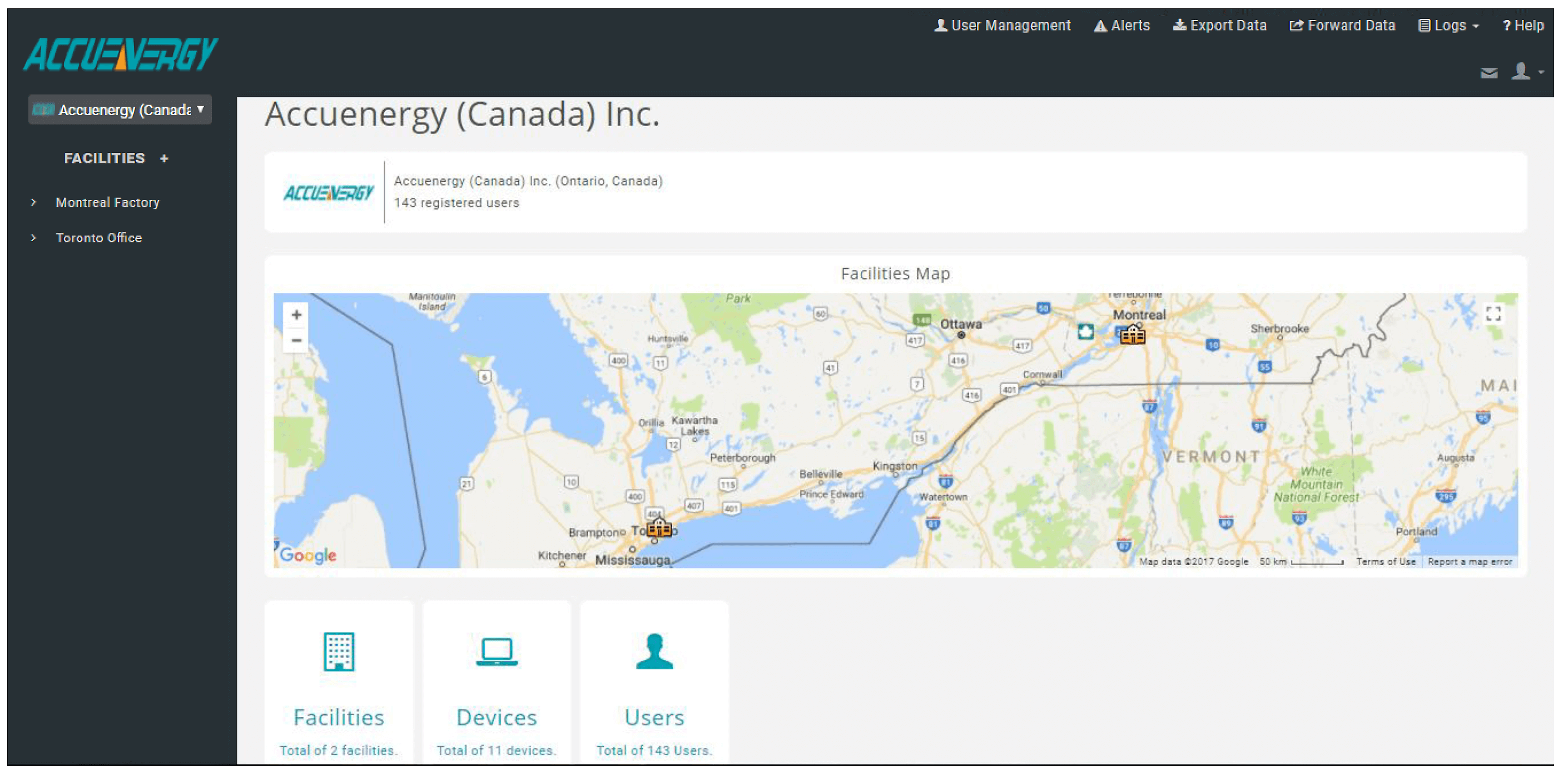 First click on the name of the Facility the meter will be added to from the left navigation panel.