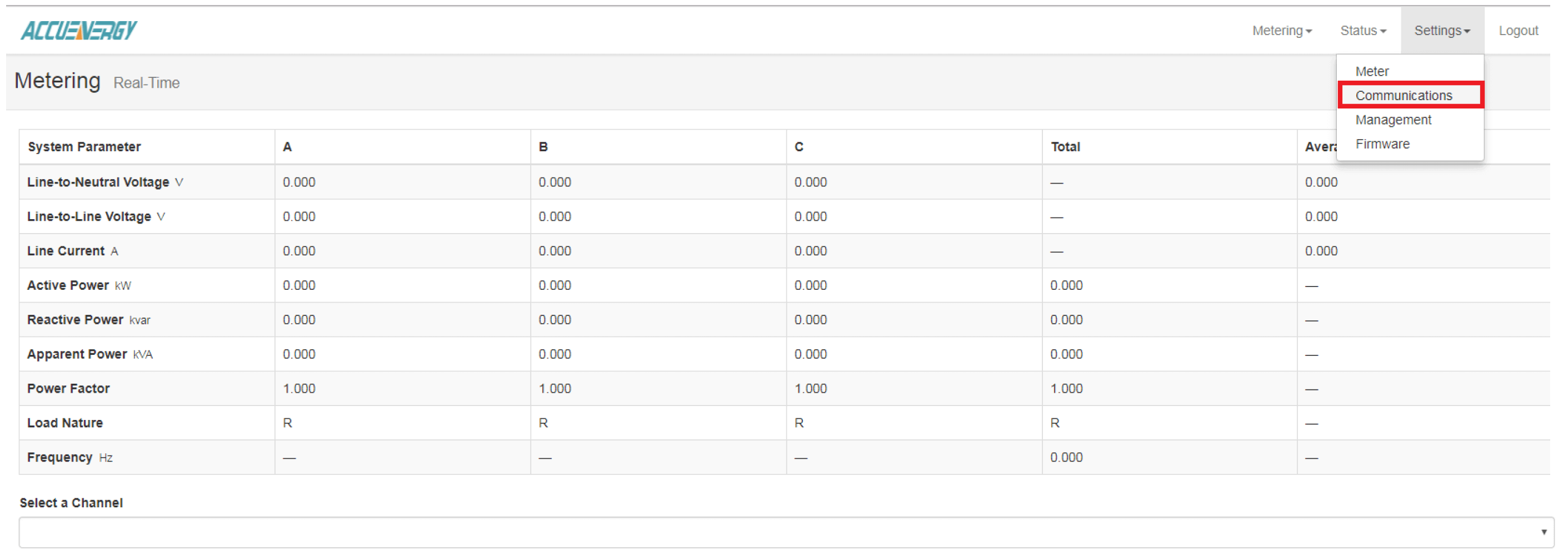 Access the web interface of the AcuRev 2020 in order to configure the meter to enable it to send its data to the AcuCloud software.