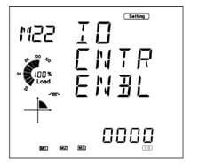 - On the pulse counter enable "IO CNTR ENBL" screen: 0001 means DI4 to DI2 are status monitors while DI1 is a pulse counter.