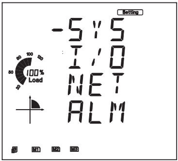- The cursor will be on 'SYS'. Press 'P' on this screen to move the cursor to the 'I/O' settings. Press 'V/A' to enter.