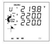 Press "V/A" to display/read the phase and line voltages, as well as the current readings.