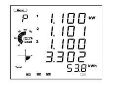 Press ‘P’ to display/read real, reactive and apparent power, as well as the power factor and frequency.
