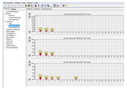 - Click on "Voltage Spectrum" to view the 2nd to the 63rd voltage harmonic spectrum