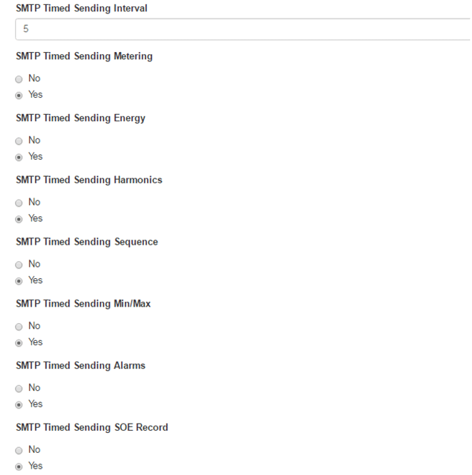 To receive emails on specific groups of parameters select 'Yes' under "SMTP Timed Sending xxx"