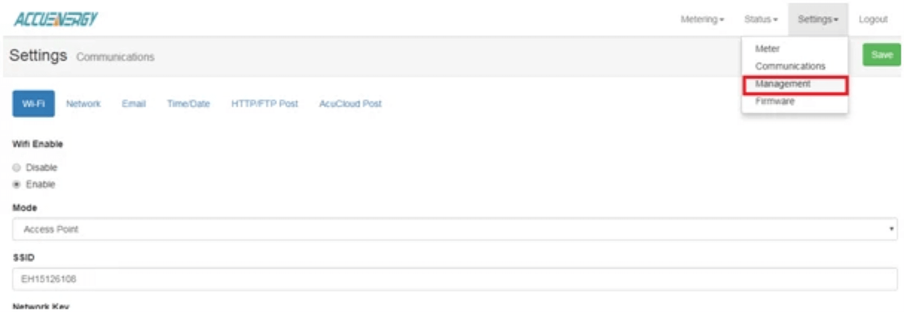 After making any changes to the settings of the AcuRev 2020 in the web interface, the meter will need to be rebooted from the 'Management' page.