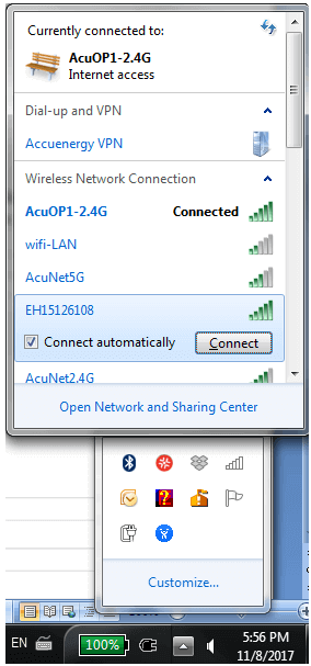 Once powered on the AcuRev 2020 will appear in the list of WIFi networks available with the SSID or name of the wireless network as the serial number of the AcuRev 2020 meter.