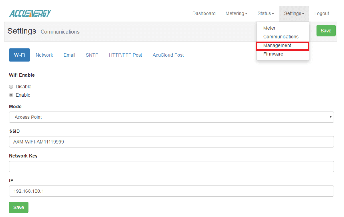 The following guide will provide an overview on connecting to the AXM-WIFI module that is attached to the back of the Acuvim II series meter that has a firmware version of at least 3.63.