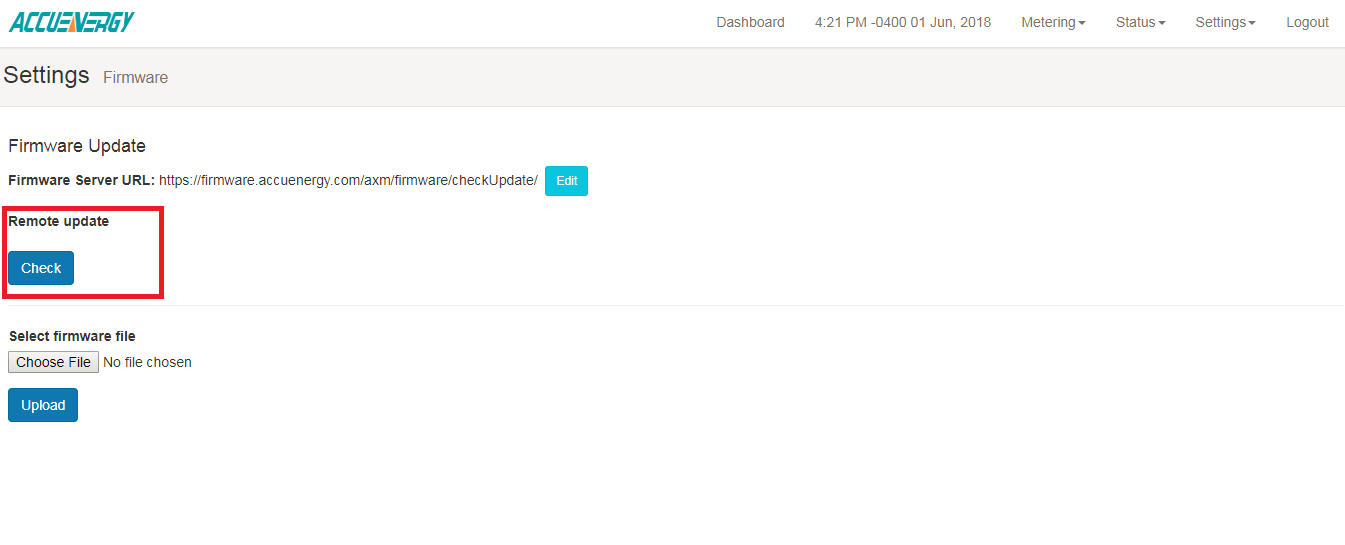 From the Firmware page, click on 'Check' under the "Remote Update".