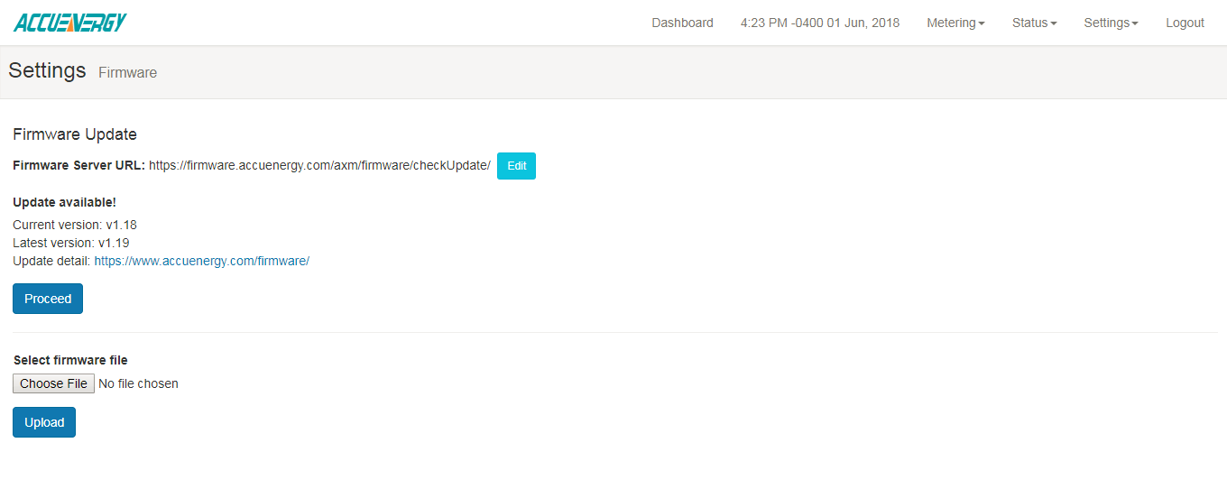 The AXM-WEB-PUSH supports remote firmware update. The WEB module can check to see if the module is running the latest firmware. If not the user can update the firmware of the AXM-WEB-PUSH remotely independently.