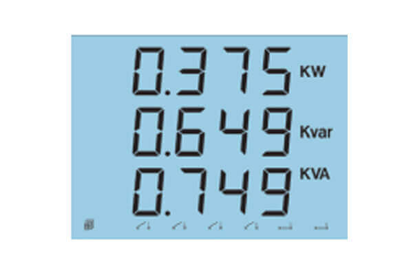 - Press ‘E’ to display/read different energy readings such as consumed energy (kWh), energy, reactive energy (kvarh), generated energy (kWh), etc.