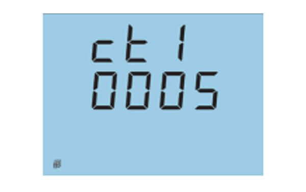 - The next screen is the CT1 screen. If no Current Transformers (CTs) were used, leave this as default ‘5’ and press ‘V/A’ to go to the next screen. If CTs were used, enter in the primary value of the CT here.