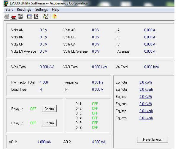to view the real time data such as the voltage, current, power and accumulated energy. - You can also view the status of the Digital Inputs(DI), status of the Relay Outputs(RO) and even control the RO's if they are configured in Latch mode by clicking 'Control'.