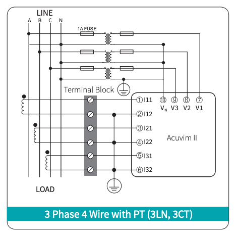 There are different kinds of wiring configurations that your Acuvim II meter must be configured to depending on the type of system it is. Some key factors include whether the system uses a delta or wye or whether it is single phase or three phase system. In order for the meter to correctly display and measure the values the right wiring configuration must be chosen.